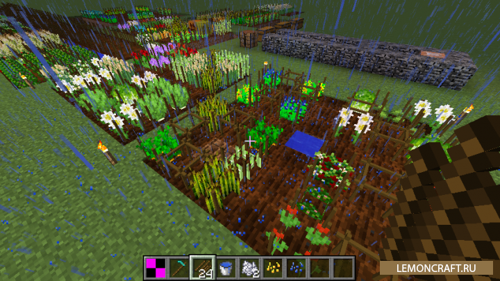 С модом AgriCraft вы сможете стать настоящим агрономом. Мод добавляет в игру различные инструменты для земледелия и растения для разведения. Теперь вы сможете заниматься селекцией и гибридизацией растительных культур. Кроме этого мод добавит новую систему хранения и удобную систему полива для ваших растений.