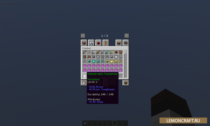 Мод Loot Slash Conquer представляет собой довольно большой РПГ мод. Данный мод добавляет в игру возможность прокачки вашего персонажа. Вы сможете наращивать уровень здоровья, урона, скорость атаки, удары и множество других параметров. Кроме этого по всему миру вы сможете найти броню и оружие, которые будут обладать различными характеристиками. Так же вы игре появятся новые мобы обладающие индивидуальным интеллектом. Мод очень обширный и добавляет множество новых предметов и вещей. Устанавливайте и все сами увидите.