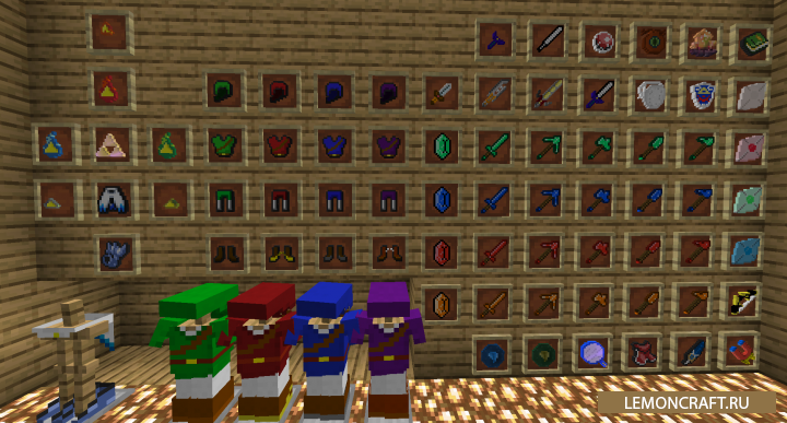 Мод на вселенную Легенды о Зельде SupersLegend добавляет в игру большое количество предметов, которые непосредственно связаны с игрой Legend of Zelda. С этим модом вы сможете создавать магические предметы, броню, инструменты и большое количество новых, декоративных блоков. Но учтите, установив мод вы не получите все и сразу, вам нужно будет развиваться для открытия новых рецептов по системе достижений.