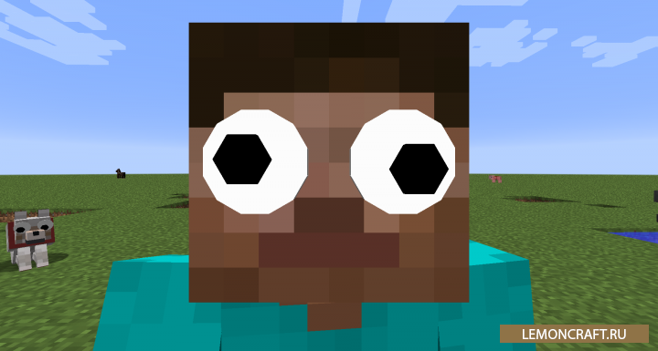 Мод на большие глаза GooglyEyes добавляет в игру довольно прикольные очки, которые сделают ваши глаза невероятно большими. Кроме этого ваши глаза начнут бегать в разные стороны, что выглядит очень смешно. Так же мобы, будут спавнится (с вероятностью 20%) с такими же огромными глазами.