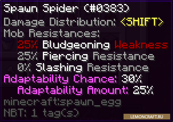 Мод на новую боевую систему Distinct Damage Descriptions добавляет в игру новую систему которая даст каждому предмету свою степень наносимого урона: дробящий, рубящий и колющий. При этом у каждого моба появится естественная защита на каждый вид наносимого урона. Соответственно мобы тоже будут использовать данную систему, атакуя вас в совершенно новом стиле.