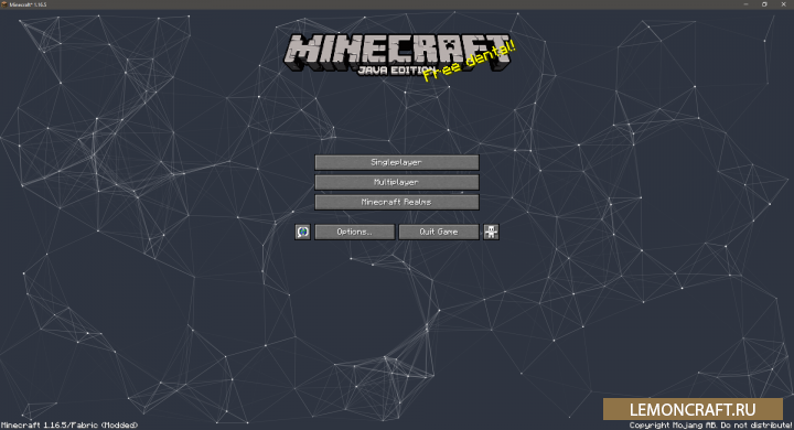 Мод на новое главное меню Particle Title Menu предназначен для изменения фона главного меню, теперь вместо обычной панорамы, экран будет заполнен точками, соединенными между собой линиями, которые будут реагировать на движение мышкой.