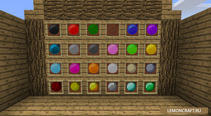 С этой модификацией вы сможете скрафтить разноцветные мячи, которые не только позволят вам высоко прыгать, но и не дадут разбиться при прыжке с большой высоты.