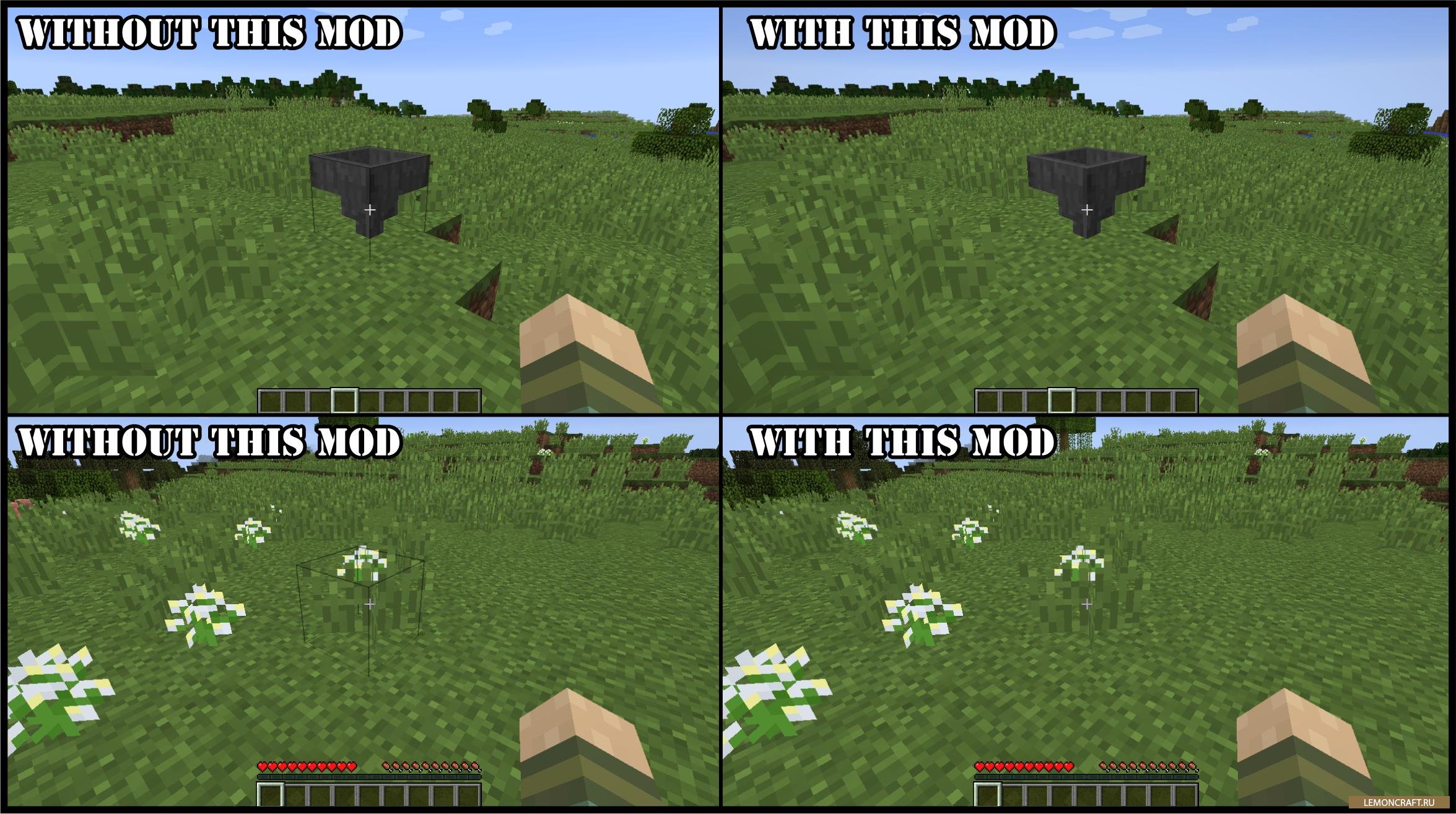 Мод на скрытие контуров блока Remove Mouseover Highlight [1.14.4] [1.12.2] [1.11.2] [1.7.10]